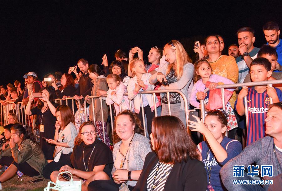 3月23日,观众们在新西兰汉密尔顿观看怀卡托热气球交响发光秀。