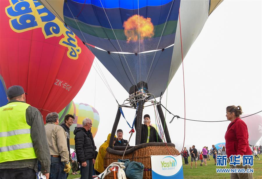 3月23日,在新西兰内陆城市汉密尔顿,工作人员在给热气球点火。