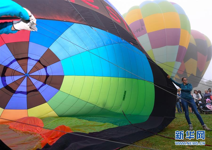 3月23日,在新西兰内陆城市汉密尔顿,工作人员给热气球充气。