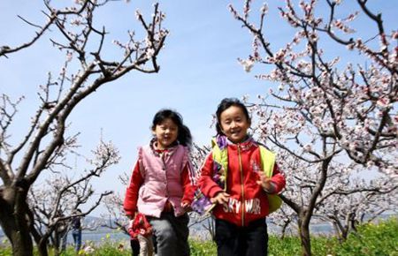 徐州吕梁湖十里杏花竞相怒放 “瑞龙”巡游花海引游客