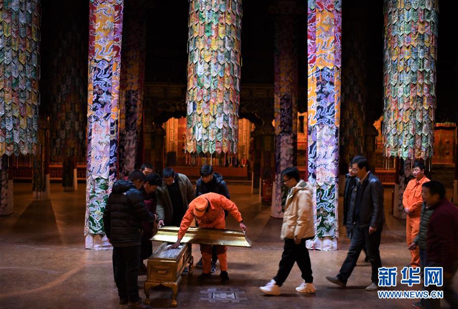 布达拉宫内的消防人员在检查灯香炉(2018年11月15日摄)。 新华社记者 普布扎西 摄