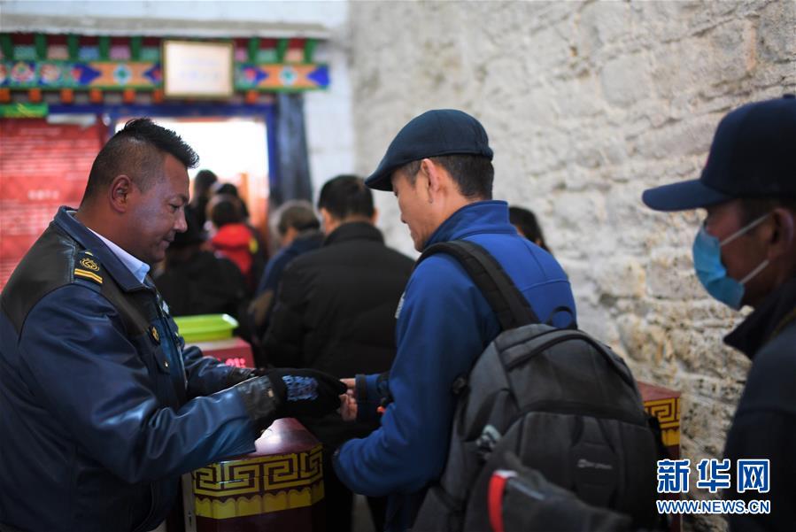 布达拉宫的安检人员在核对参观者的门票、身份证件等(2018年11月15日摄)。 新华社记者 普布扎西 摄