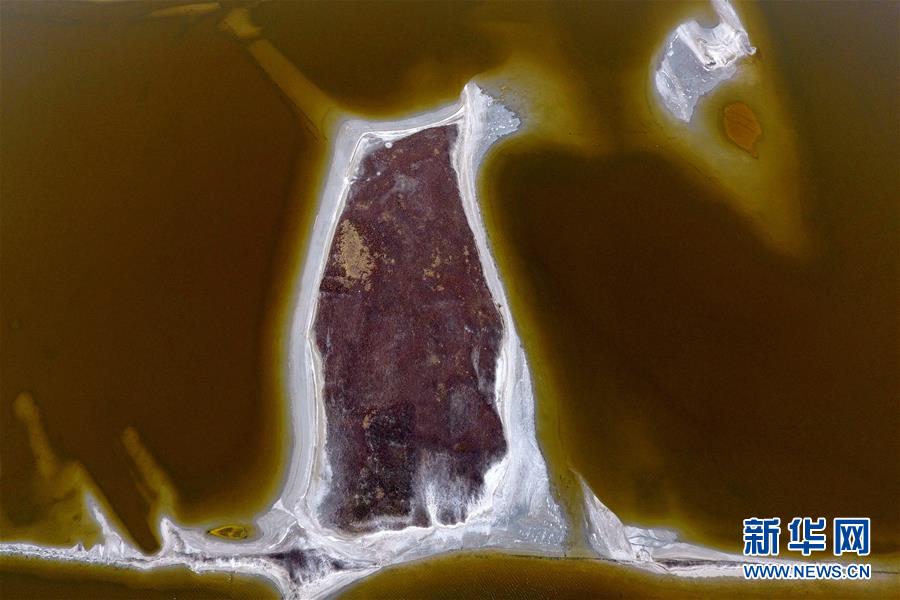 这是3月27日无人机拍摄的山西运城盐湖。近日,随着气温不断升高,山西运城盐湖呈现五彩斑斓的景象,美不胜收。新华社记者 曹阳 摄