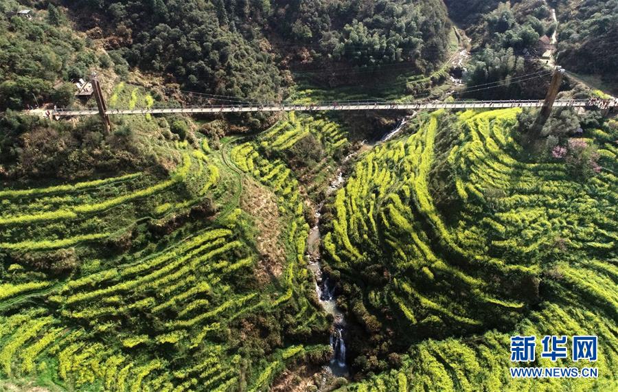 这是3月26日无人机拍摄的江西省婺源县篁岭景区的油菜花梯田。 近日,素有“梦里老家”之称的江西省婺源县迎来油菜花的盛花期,油菜花与徽派古宅、层层梯田相互辉映,吸引游客前来赏花踏春。 新华社记者 彭昭之 摄