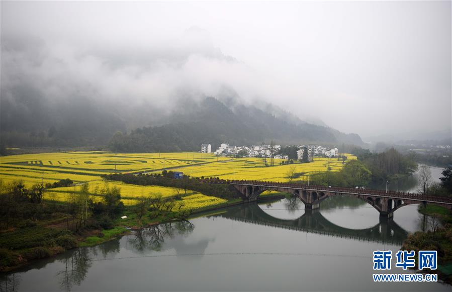 这是3月27日拍摄的安徽省黄山市齐云山风景区。 当日,安徽省黄山市齐云山风景区云雾缭绕,风景秀美。 新华社记者 刘军喜 摄