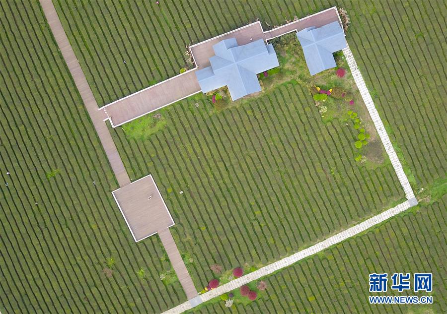 3月27日,一些采茶工在贵州省贵安新区羊艾茶场采摘春茶(无人机拍摄)。近日,贵州省贵安新区各大茶场的春茶陆续采摘,采茶工人点缀于线条分明的春日茶园之中,美若画卷。新华社记者 陈晔华 摄
