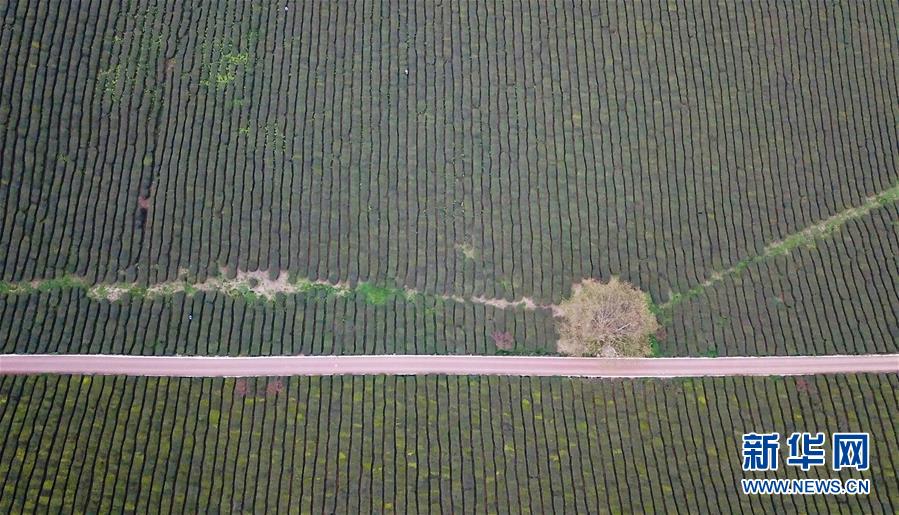 这是3月27日拍摄的贵州省贵安新区羊艾茶场(无人机拍摄)。近日,贵州省贵安新区各大茶场的春茶陆续采摘,采茶工人点缀于线条分明的春日茶园之中,美若画卷。新华社记者 杨文斌 摄