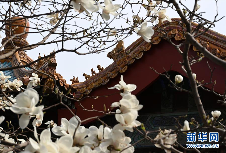3月28日在北京故宫御花园拍摄的玉兰花。