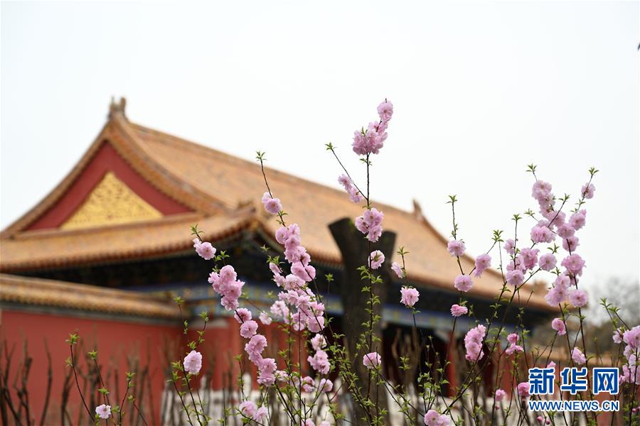 3月28日在北京故宫武英殿前拍摄的鲜花。