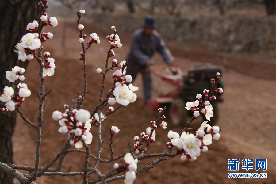 3月27日,河北唐山遵化市娘娘庄乡大官屯村村民在杏树果园整地。三月春暖,春花绽放,各地农民伴着花香忙碌在田间地头。 新华社发(刘满仓 摄)