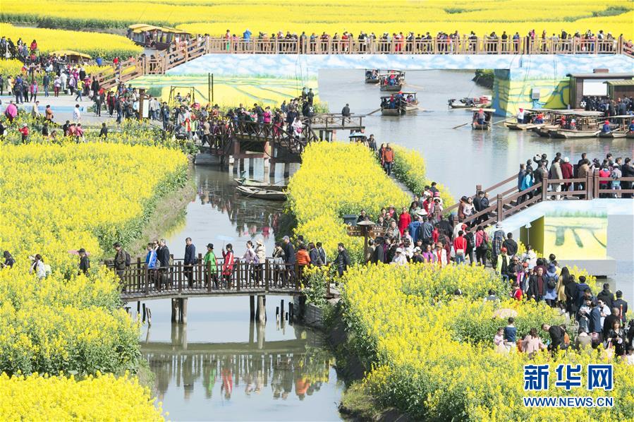 3月31日,游客在江苏兴化千垛菜花景区游览。 近日,江苏省兴化市千垛菜花景区的油菜花次第盛开,吸引众多游客前往赏花游玩。 新华社发(徐劲柏 摄)
