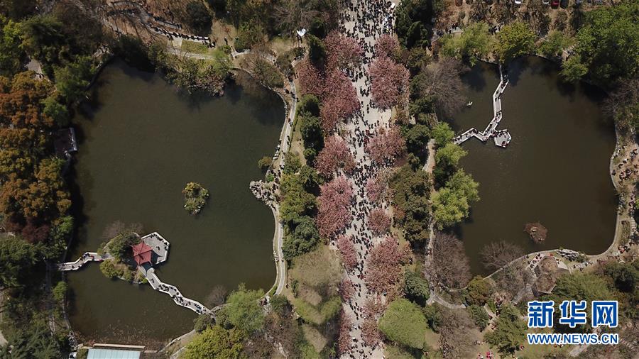 3月31日,游客在中国科学技术大学东区观赏樱花(无人机拍摄)。
