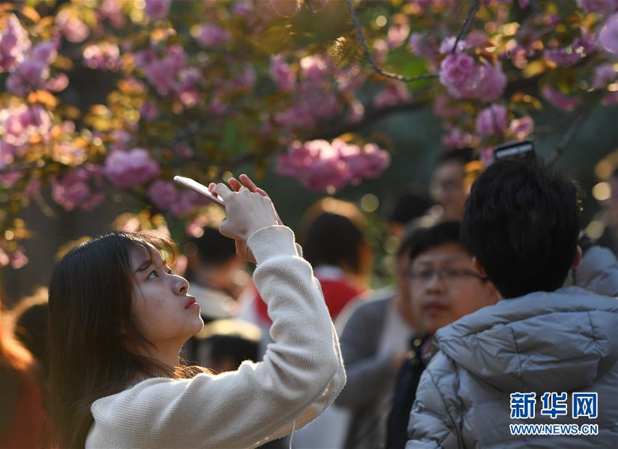近日,位于安徽合肥的中国科学技术大学校园内樱花竞相开放,吸引众多游客和市民前来观花赏景。新华社记者 张端 摄
