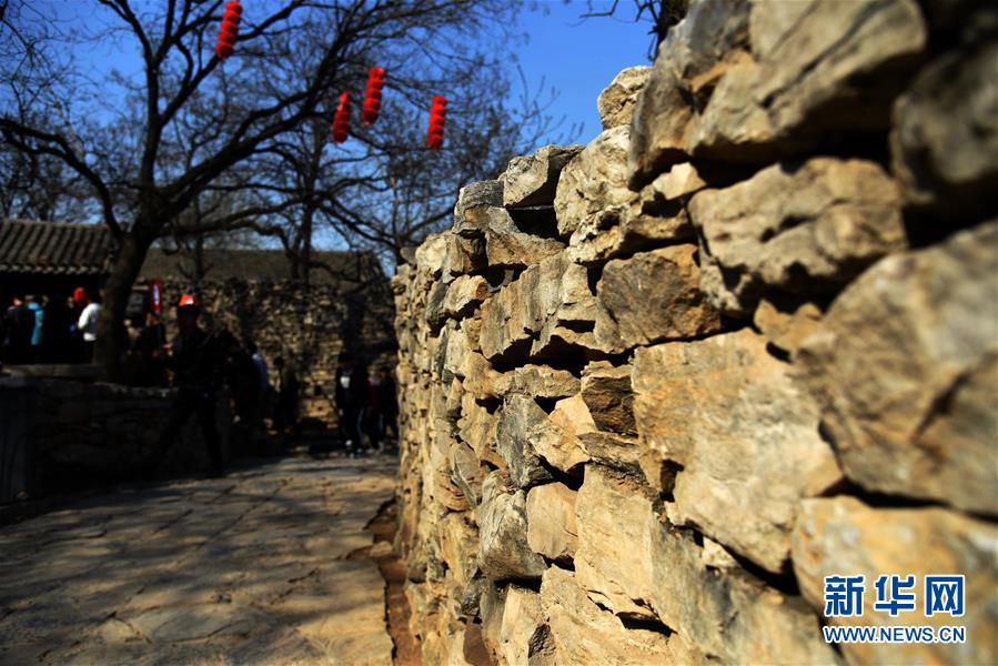 3月31日,游客在上九山村游览。山东省邹城市石墙镇上九山村始建于宋代,是一座依山而建的石头村,有明清建筑风格的古民居300余套,古朴传统的村貌吸引众多游客。2019年1月,上九山村入选第七批中国历史文化名村。 新华社记者 王凯 摄