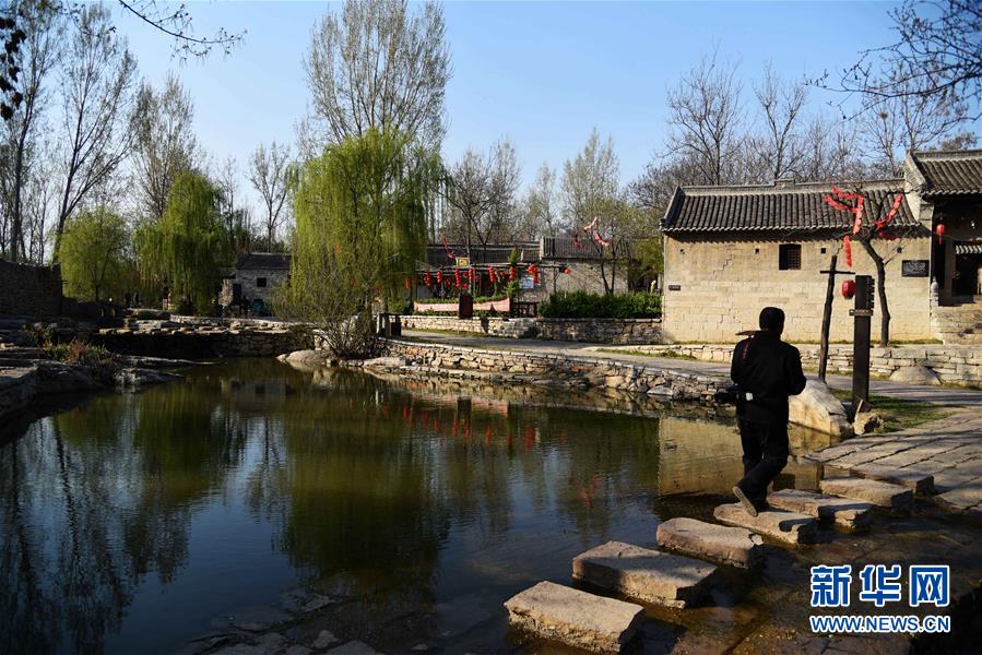 3月31日,游客在上九山村游览。山东省邹城市石墙镇上九山村始建于宋代,是一座依山而建的石头村,有明清建筑风格的古民居300余套,古朴传统的村貌吸引众多游客。2019年1月,上九山村入选第七批中国历史文化名村。 新华社记者 王凯 摄
