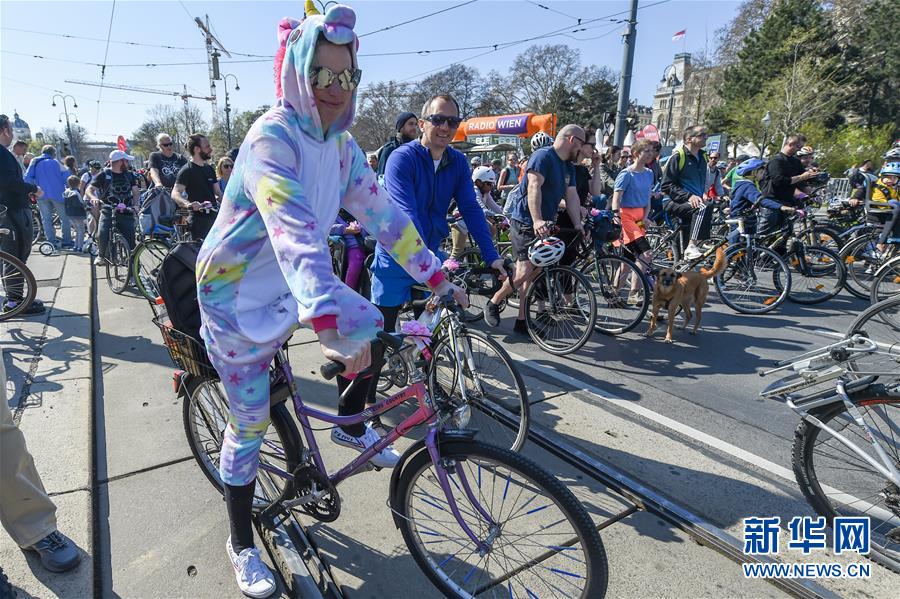 3月31日,在奥地利维也纳,自行车爱好者参加2019自行车骑行嘉年华活动。当日,奥地利维也纳举行2019自行车骑行嘉年华活动,吸引了约15000名自行车爱好者参与。新华社记者郭晨摄