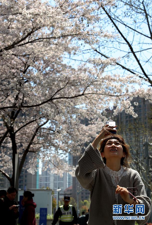 4月1日,市民在拍摄樱花。 新华社记者 刘颖 摄