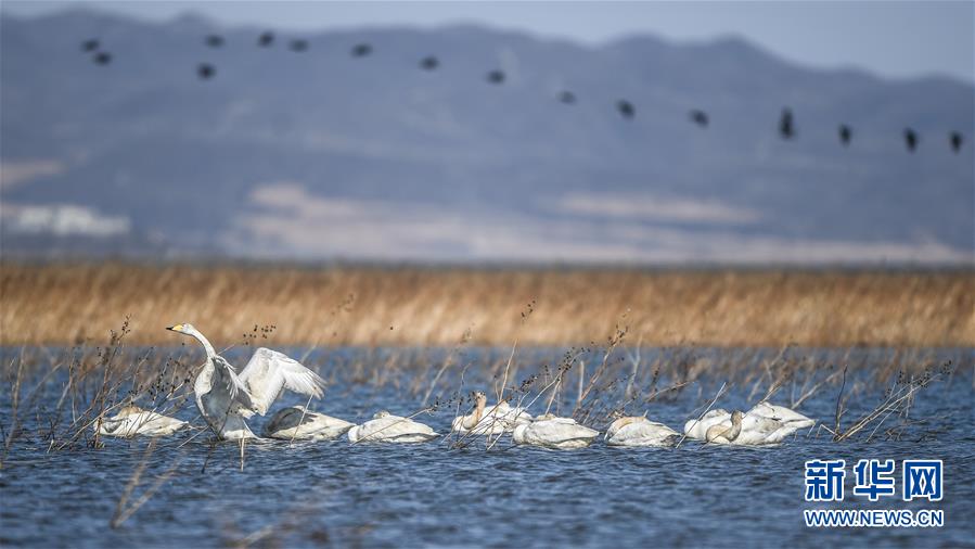 4月2日,大天鹅在白石水库湿地自然保护区休息。 新华社记者 潘昱龙 摄