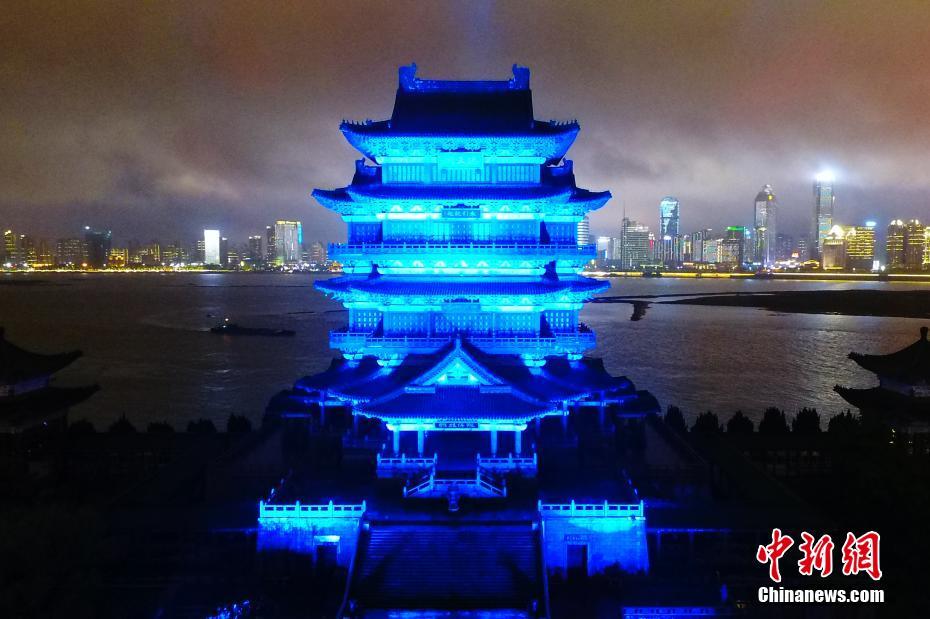4月2日晚,位于江西南昌赣江之畔的江南名楼滕王阁点亮蓝灯,引导社会公众关爱、关注、理解自闭症儿童。当天是第12个世界自闭症日,南昌市滕王阁联合包括湖南岳阳楼、湖北黄鹤楼在内的中国16个历史文化名楼,共同“点亮蓝灯”,号召社会关注自闭症群体,呼吁公众关爱被称为“星星的孩子”的自闭症孩童。刘占昆 摄