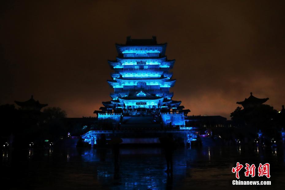 世界自闭症日 江南名楼滕王阁点亮蓝灯