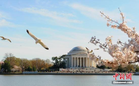中新网4月3日电 据外媒报道,又到了樱花盛开的季节。4月1日,美国华盛顿樱花进入盛放期,盛开之处一片花团锦簇,吸引游客欣赏春色。