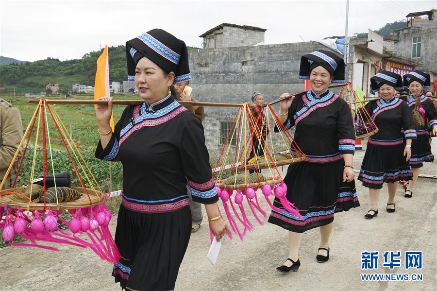 4月3日,广西百色市右江区龙川镇壮族群众挑着食品参加“三月三歌节”美食展示活动。 随着“壮族三月三”假期临近,广西各地陆续开展丰富多彩的民俗活动,喜迎节日。今年的“壮族三月三·八桂嘉年华”活动于3月25日至4月25日举行,在为期一个月的时间内,广西各地举行的各种庆祝活动预计超过900场。 新华社发(周信实 摄)