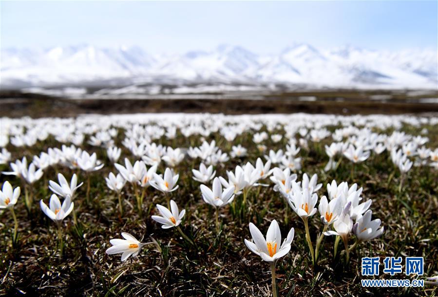 这是新疆那拉提景区雪山脚下盛开的野百合(4月4日摄)。新华社记者 沙达提 摄