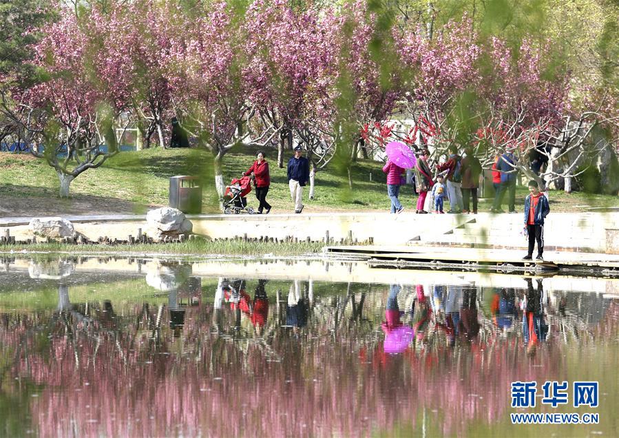 4月7日,在石家庄市河北科技大学,游客在校园内赏景。清明时节,人们外出旅游,踏青赏花,感受春天的美好。 新华社发(梁子栋 摄)