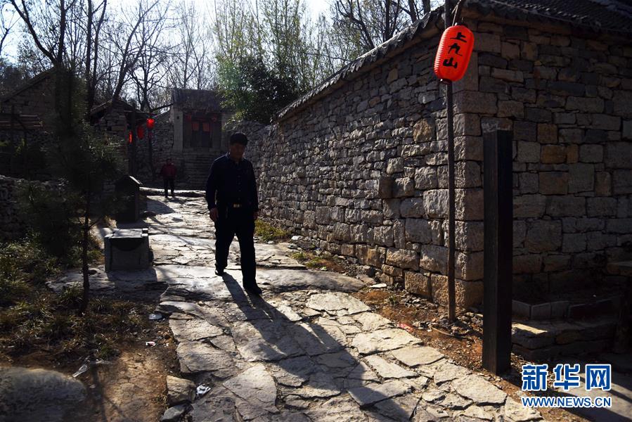 游客在山东省邹城市石墙镇上九山景区内游览(3月31日摄)。 新华社记者王凯摄