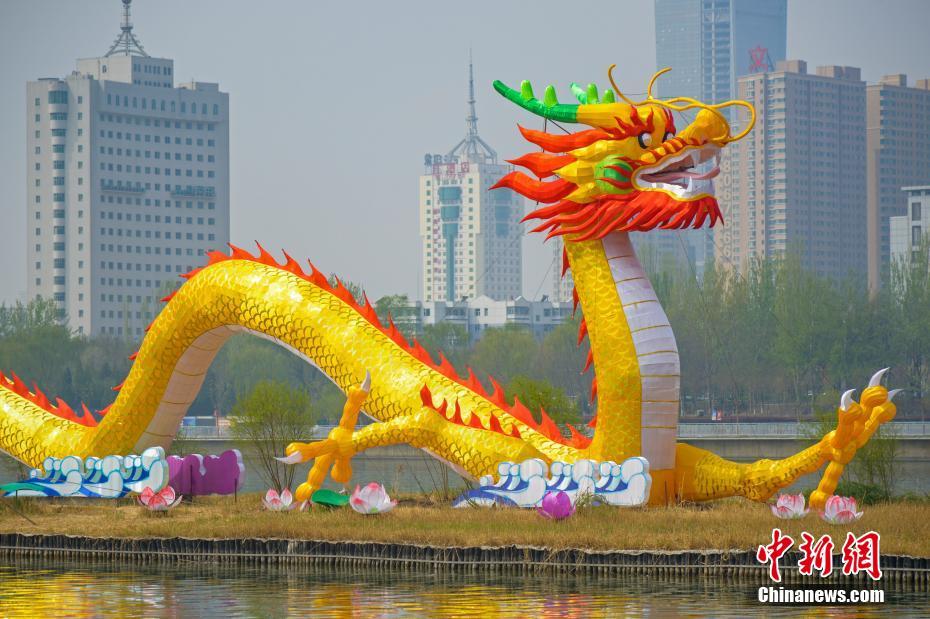 4月10日,山西太原汾河景区,于近日换装完毕的“巨龙”装饰一新。这条名为“中华第一巨龙”的景观灯组长126米,龙头高16米,是汾河景区的著名景观。中新社记者 武俊杰 摄