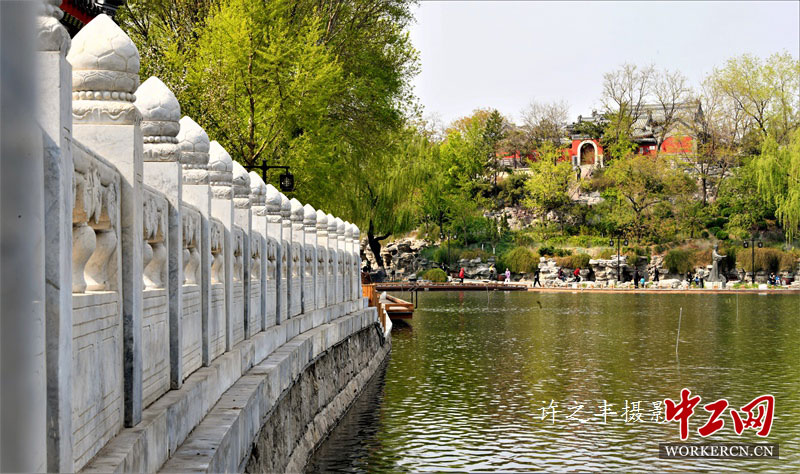 北京汇通祠位于什刹海西海西北小岛上。明永乐年间始建,旧称法华寺,因祠庙迎水、临水,明代时称之为镇水观音庵。祠庙坐落于什刹海入水口的环形土山之上,土山正对着城墙水关,西山诸泉自水关入后,沿环形土山流入什刹海。因修建二环路及地铁时,汇通祠曾被拆除。近些年汇通祠被重新恢复,并设有中国元代杰出的天文、水利、仪器仪表制造专家郭守敬纪念馆。图为2019年4月11日的北京汇通祠。工人日报-中工网许之丰摄影报道