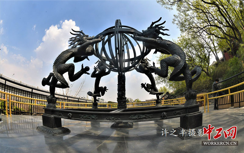 北京汇通祠位于什刹海西海西北小岛上。明永乐年间始建,旧称法华寺,因祠庙迎水、临水,明代时称之为镇水观音庵。祠庙坐落于什刹海入水口的环形土山之上,土山正对着城墙水关,西山诸泉自水关入后,沿环形土山流入什刹海。因修建二环路及地铁时,汇通祠曾被拆除。近些年汇通祠被重新恢复,并设有中国元代杰出的天文、水利、仪器仪表制造专家郭守敬纪念馆。图为2019年4月11日的北京汇通祠。工人日报-中工网许之丰摄影报道