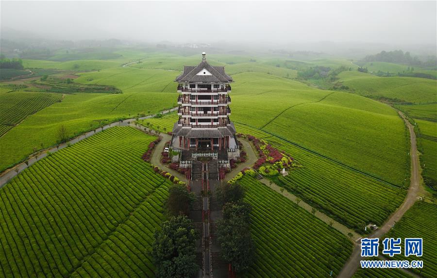 4月12日无人机拍摄的“万亩茶海”风光。 近日,位于贵州省湄潭县永兴镇的“万亩茶海”春色怡人,呈现出一幅美丽的春季画卷。据了解,该茶海连片种植面积达4.3万亩。 新华社记者 刘续 摄