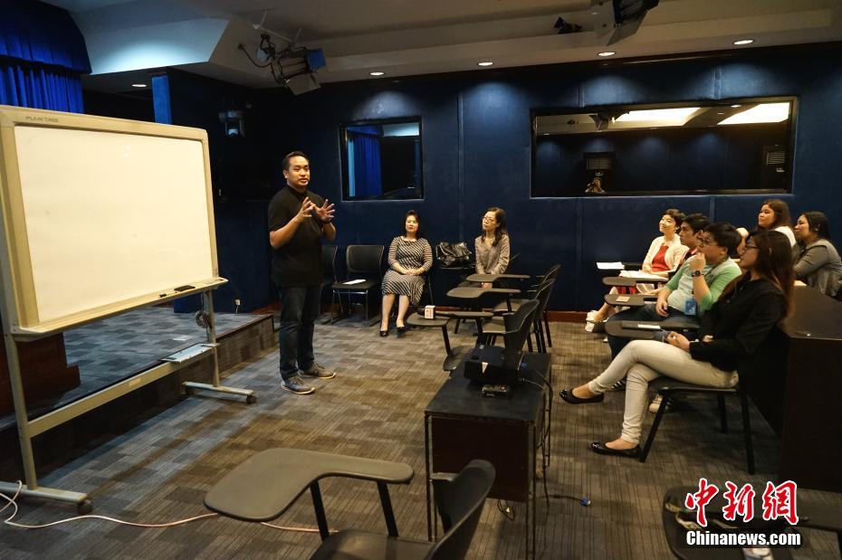 当地时间4月12日,菲律宾大学孔子学院为菲律宾总统府新闻部开设的汉语课开班。近30位学员将在40周80个课时的汉语学习过程中,掌握基础汉语,了解中国文化。图为菲律宾总统府新闻部负责官员在开班仪式上致辞鼓励学员学好普通话,与中国多交流。中新社记者 关向东 摄