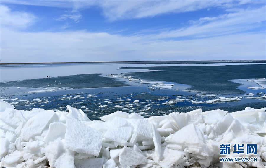 这是青海湖二郎剑景区一角(4月11日摄)。随着天气转暖,“沉睡”中的青海湖在春风吹拂下逐渐掀开了冰雪“薄纱”,形成壮美的开湖景观。据了解,青海湖通常每年12月中旬进入封冻期,次年4月中旬完全解冻。 新华社记者 张宏祥 摄