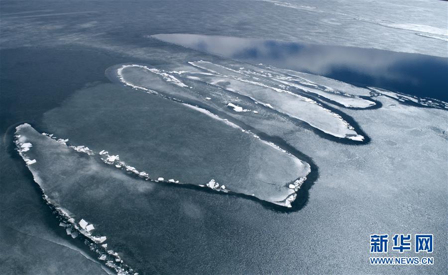 这是青海湖二郎剑景区一角(4月11日无人机拍摄)。随着天气转暖,“沉睡”中的青海湖在春风吹拂下逐渐掀开了冰雪“薄纱”,形成壮美的开湖景观。据了解,青海湖通常每年12月中旬进入封冻期,次年4月中旬完全解冻。 新华社记者 张宏祥 摄