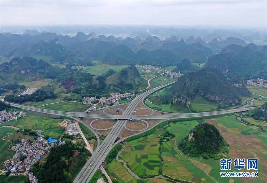 这是广西靖西市新靖镇境内的田园风光(4月16日无人机拍摄)。 近日,广西靖西市田园绿意盎然,景色如画。 新华社记者 陆波岸 摄