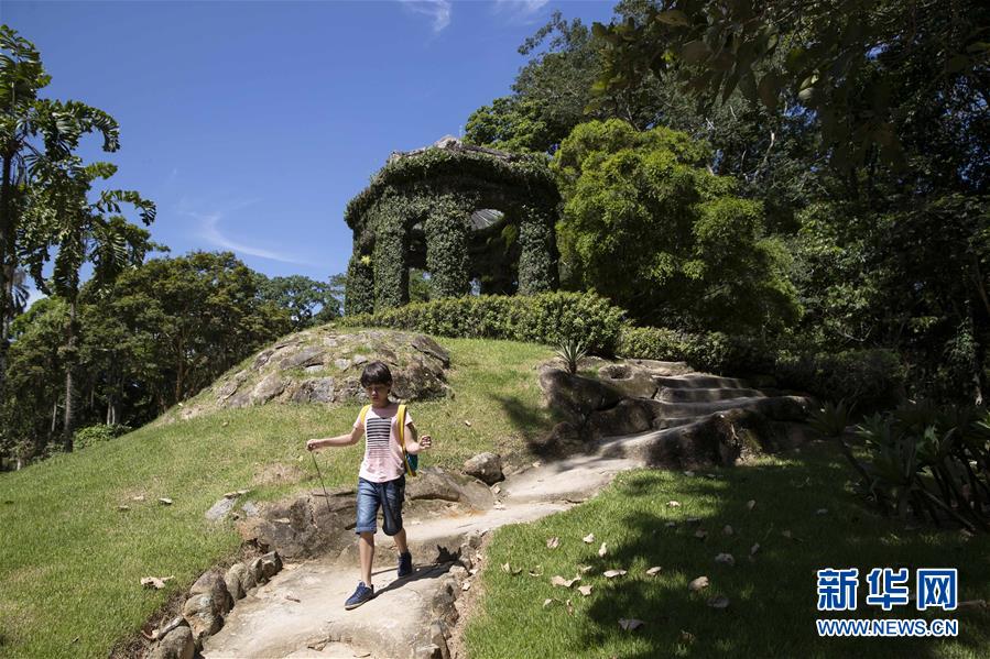 3月27日,一名儿童在巴西里约热内卢植物园内游览。 新华社记者李明摄