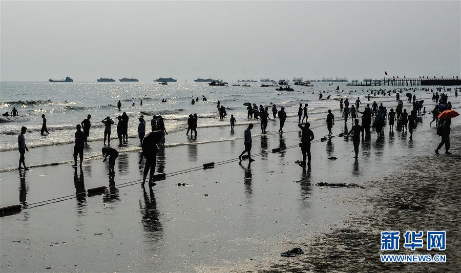 4月18日,游客在北海银滩游玩。 近日,随着气温回升,众多游客来到广西北海银滩旅游,享受碧海蓝天带来的乐趣。 新华社记者 张爱林 摄