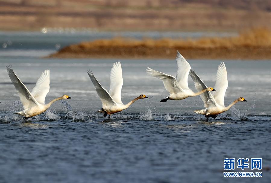 4月19日,一群天鹅在闪电河国家湿地公园嬉戏。 近日,大批天鹅、白琵鹭、灰鹤、大雁等候鸟飞抵闪电河国家湿地公园,成为一道靓丽的风景。地处坝上地区河北省沽源县的闪电河国家湿地公园是候鸟迁徙重要通道之一,良好的生态环境为候鸟提供了栖息场所。 新华社记者 杨世尧 摄