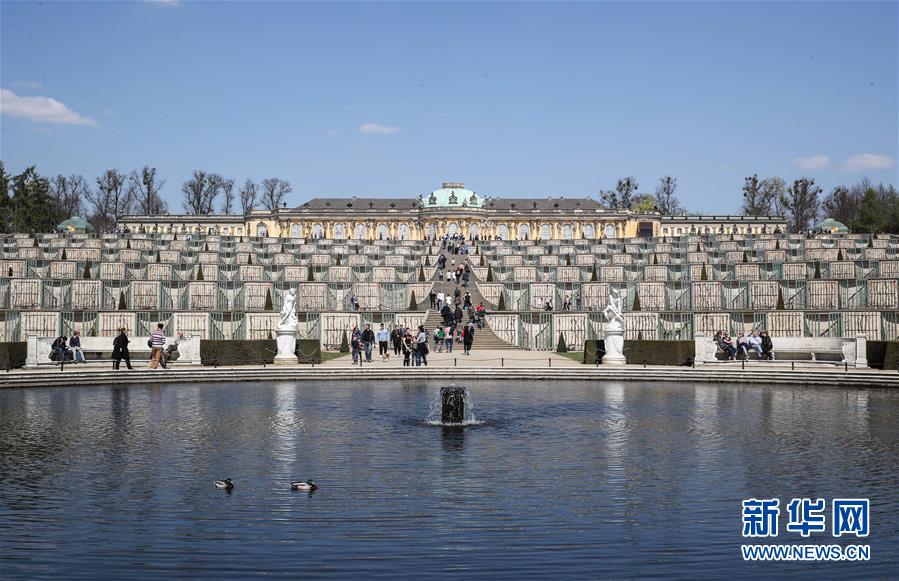 无忧宫位于德国首都柏林西南的波茨坦,是为当时的普鲁士国王腓特烈二世建造的一座洛可可式宫殿。全部建筑工程前后延续了约50年之久,为德国建筑艺术的精华。无忧宫及其周边的园林于1990年被联合国教科文组织列入世界文化遗产名录。 2019年中国北京世界园艺博览会(简称北京世园会)将于4月至10月举行。本届世园会将有约110个国家和国际组织、120多个非官方参展方参展,将刷新世园会参展方历史纪录。 这是4月18日在德国波茨坦拍摄的无忧宫。 新华社记者 单宇琦 摄