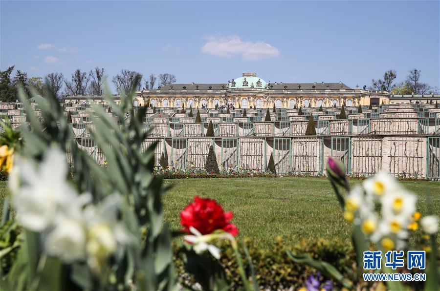 无忧宫位于德国首都柏林西南的波茨坦,是为当时的普鲁士国王腓特烈二世建造的一座洛可可式宫殿。全部建筑工程前后延续了约50年之久,为德国建筑艺术的精华。无忧宫及其周边的园林于1990年被联合国教科文组织列入世界文化遗产名录。 2019年中国北京世界园艺博览会(简称北京世园会)将于4月至10月举行。本届世园会将有约110个国家和国际组织、120多个非官方参展方参展,将刷新世园会参展方历史纪录。 这是4月18日在德国波茨坦拍摄的无忧宫一景。 新华社记者 单宇琦 摄