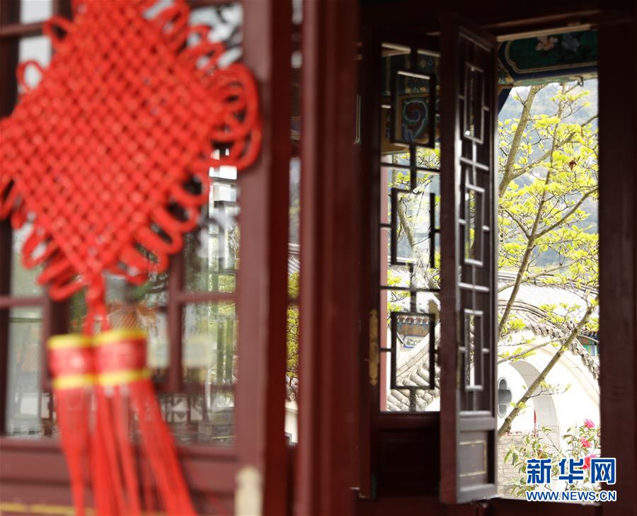 这是4月18日在日本鸟取县“燕赵园”内拍摄的景色。 新华社记者 杜潇逸 摄