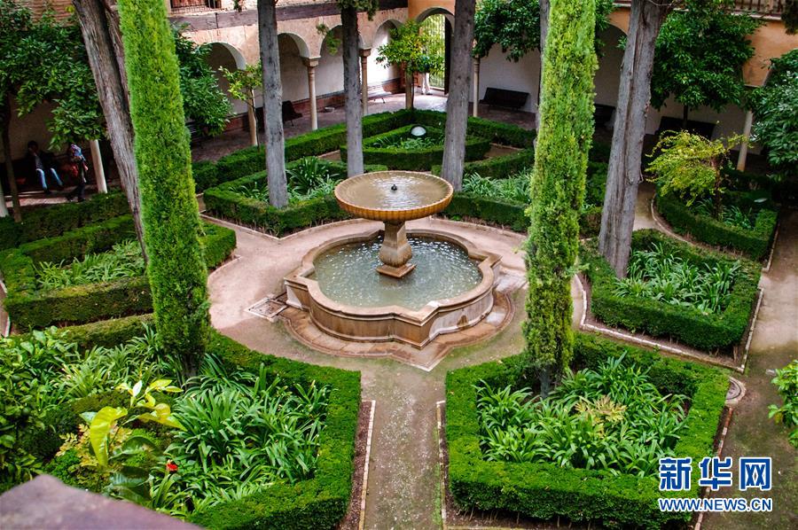 这是2013年10月26日拍摄的西班牙阿尔罕布拉宫内的达拉塞花园。作为伊斯兰教世俗建筑与造园技艺完美结合的建筑名作以及阿拉伯式宫殿庭院建筑的优秀代表,1984年阿尔罕布拉宫被联合国教科文组织列入世界文化遗产名录之中。新华社记者辛悦卫摄