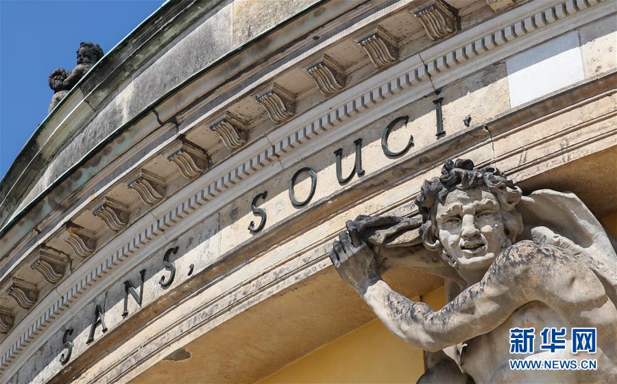 这是2019年4月18日在德国波茨坦拍摄的无忧宫花园内的一座雕塑。无忧宫位于德国首都柏林西南的波茨坦,是为当时的普鲁士国王腓特烈二世建造的一座洛可可式宫殿。全部建筑工程前后延续了约50年之久,为德国建筑艺术的精华。无忧宫及其周边的园林于1990年被联合国教科文组织列入世界文化遗产名录。新华社记者单宇琦摄
