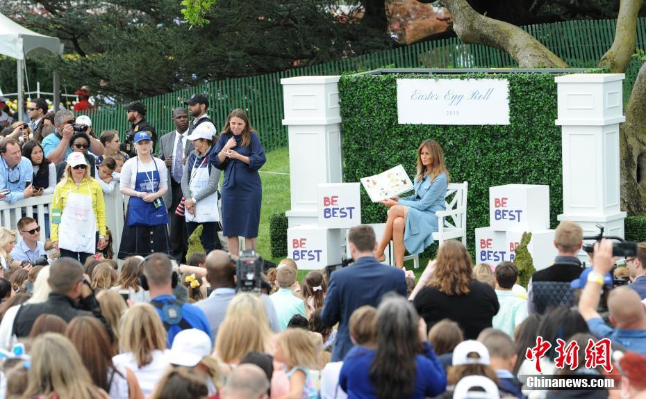 当地时间4月22日,美国白宫举行一年一度的复活节滚彩蛋活动。图为第一夫人梅拉尼娅在白宫南草坪为参加活动的孩子们讲故事。中新社记者 陈孟统 摄