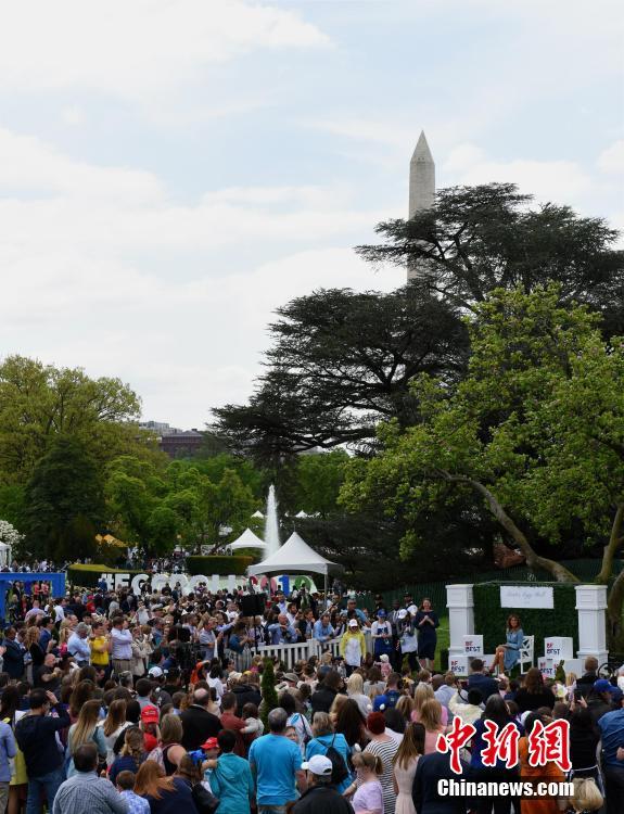 当地时间4月22日,美国白宫举行一年一度的复活节滚彩蛋活动。图为第一夫人梅拉尼娅在白宫南草坪为参加活动的孩子讲故事。 中新社记者 陈孟统 摄