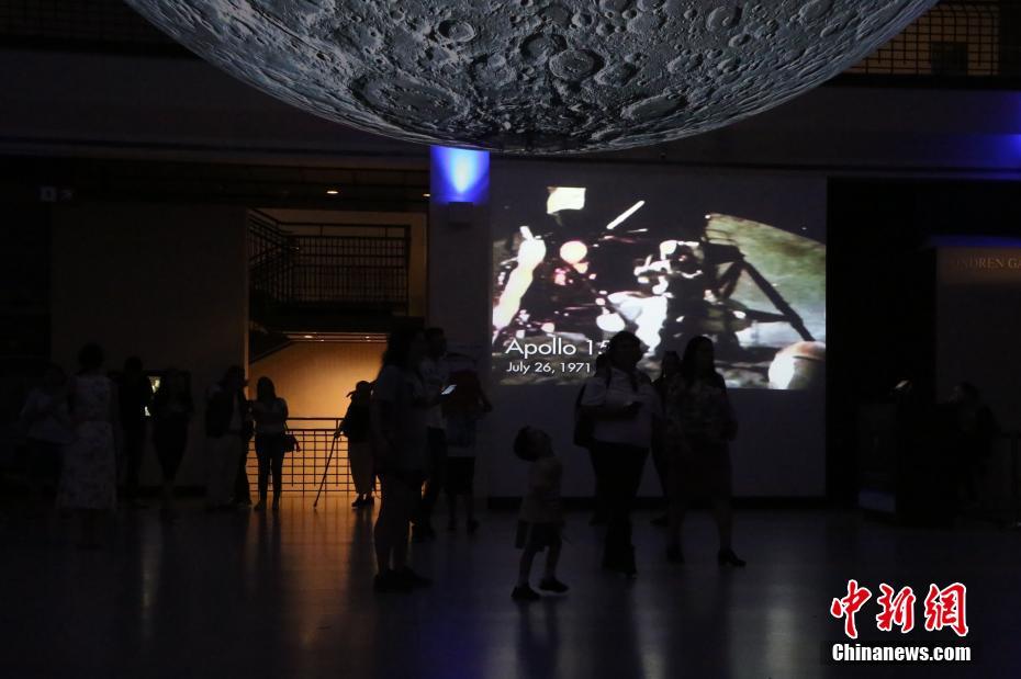 当地时间4月25日,为纪念“阿波罗11号”成功登月50年,休斯敦自然科学博物馆展出”超级大月亮”。英国装置艺术家卢克·杰拉姆(Luke Jerram)的这幅作品采用投影映射,以120像素/英寸的分辨率呈现出美国宇航局采集的月球表面的图像,包括第谷环形山、阿波罗11号登陆点及“月球背面”等。图为当地民众25日在博物馆观赏“超级大月亮”。中新社记者 曾静宁 摄