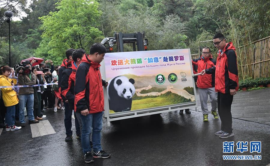 4月29日,在中国大熊猫保护研究中心雅安碧峰峡基地,工作人员将大熊猫“如意”运往运输车。当日,大熊猫“如意”“丁丁”离开位于四川省雅安市的中国大熊猫保护研究中心雅安碧峰峡基地前往俄罗斯,开启为期15年的中俄大熊猫保护研究合作项目。新华社记者 薛玉斌 摄