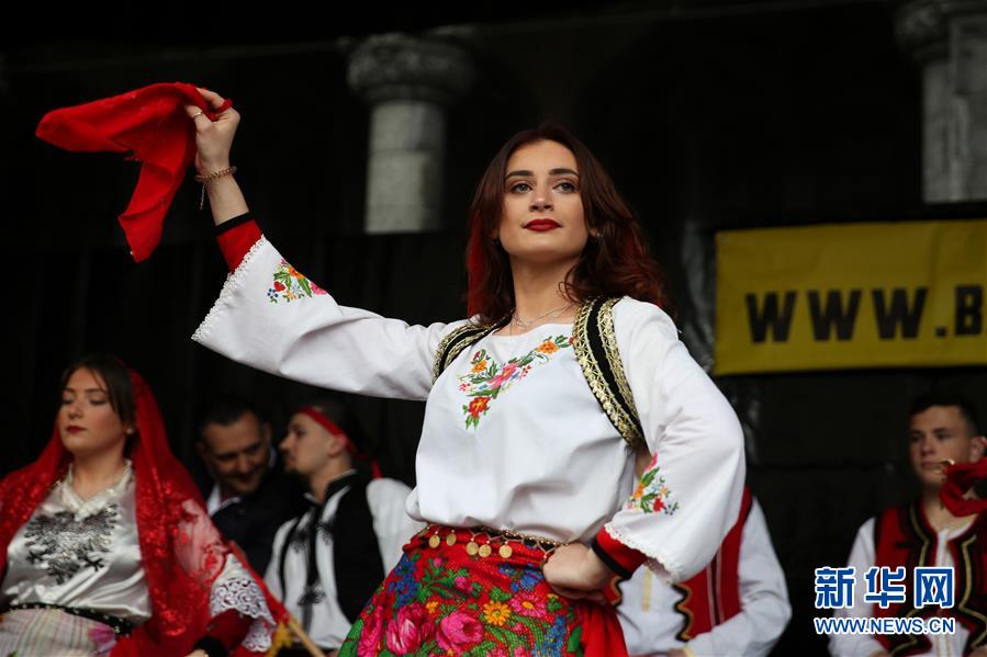 4月28日,在比利时布鲁塞尔大广场,演员表演阿尔巴尼亚的民族舞蹈。 当日,来自欧洲多个国家的表演者在比利时布鲁塞尔大广场载歌载舞,庆祝为期五天的2019年巴尔干文化艺术节圆满落幕。该文化艺术节旨在用音乐、舞蹈、文学、街头艺术等方式向公众展现东南欧巴尔干半岛地区的民族文化风情。 新华社记者郑焕松摄